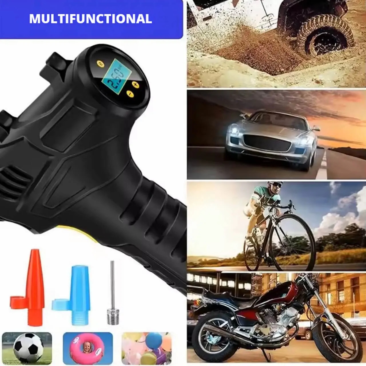 - Compatibilitate largă cu diverse tipuri de anvelope și obiecte gonflabile.